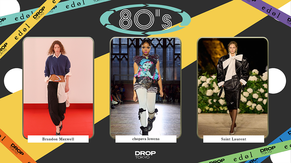 80年代のトレンドのリバイバル。今回のショーでは80'sのトレンドの中でも、「パワーショルダ—」と「バルーンパンツ」をピックアップ。
