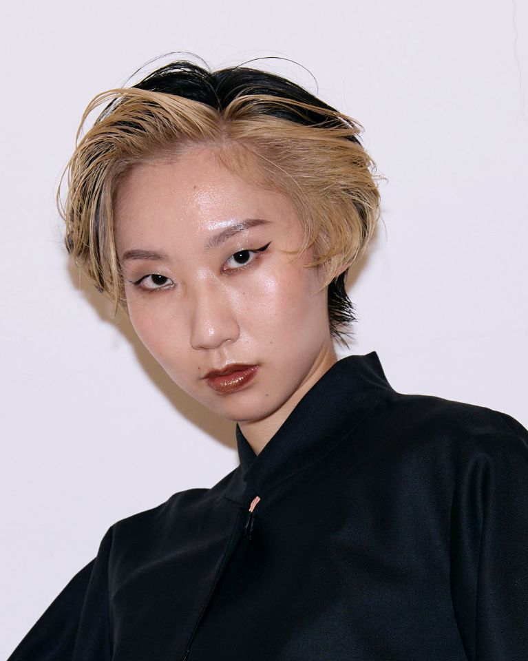 「ボリューム感のあるファッショントレンドに合わせて、フロント部分にボリュームを持っていきながら、顔まわりのレイヤーとフェイスフレーミングで軽さと動きを出しました。カラーはベージュとブラックのコントラストで、ファッションに負けない強さを表現しました。」