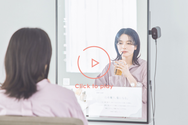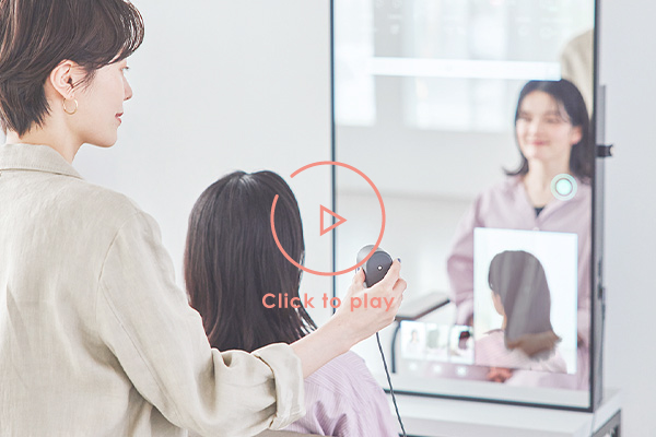 ミラー上に画像や動画を映し出し、来店中のコミュニケーションをサポートするスマートデバイスミラー。ミラーを通じて操作・紹介した内容は、カルテやお客様マイページに自動的に連携し、業務効率化にも繋がります。 -