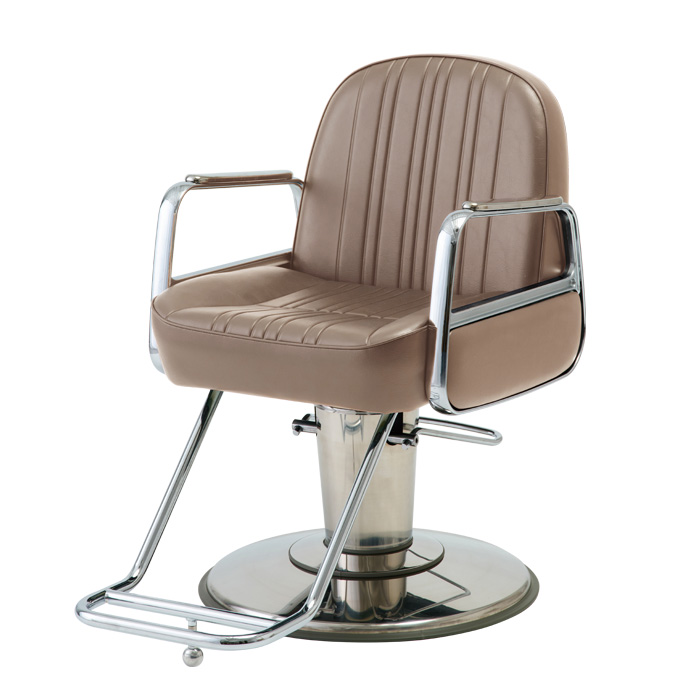 どっしりとした重量感のあるデザイン、身体をゆったりと受け止めてくれるバケットタイプのシート。そして硬質なアルミフレームの手すり…。古き良きアメリカを想起させるチェアです。しっかりと身体を受け止めてくれるソファタイプのシートで、長時間の施術にも対応します。